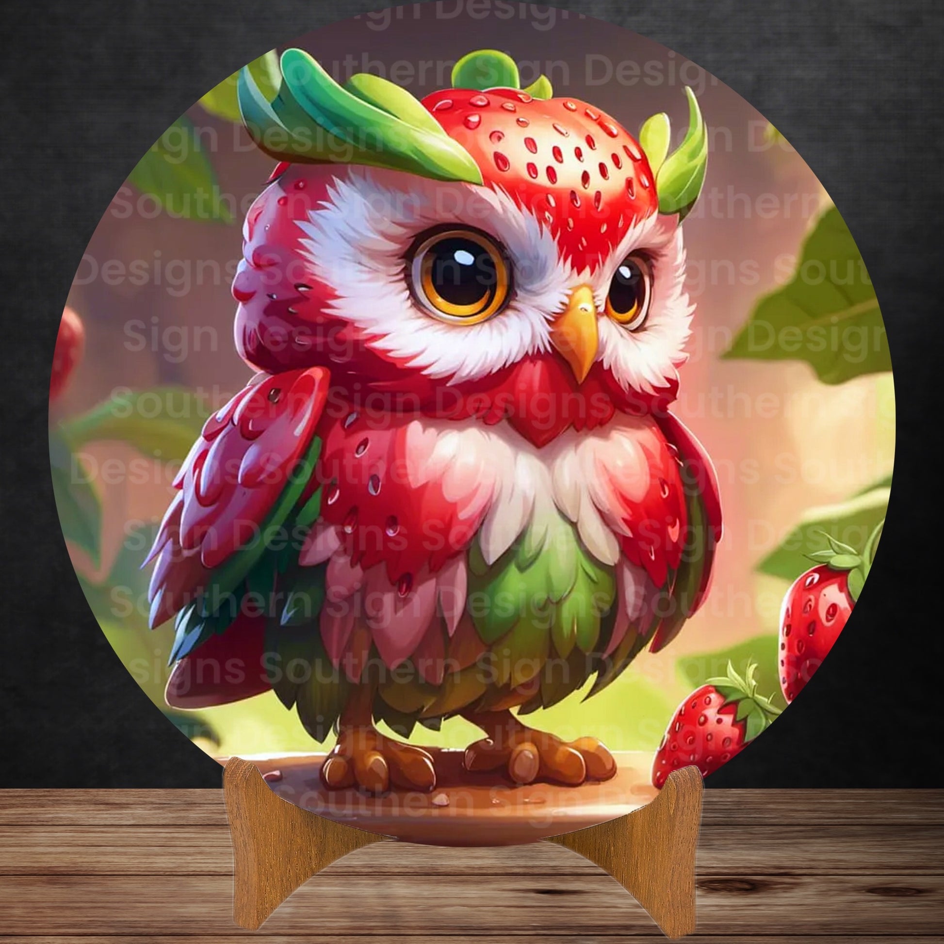 Embark on a whimsical journey with our captivating wreath sign, depicting the endearing image of a baby owl transformed into a strawberry after indulging in a berry feast. This playful tableau captures the essence of imaginative charm and delightful storytelling, as the owl's adorable transformation unfolds before your eyes.