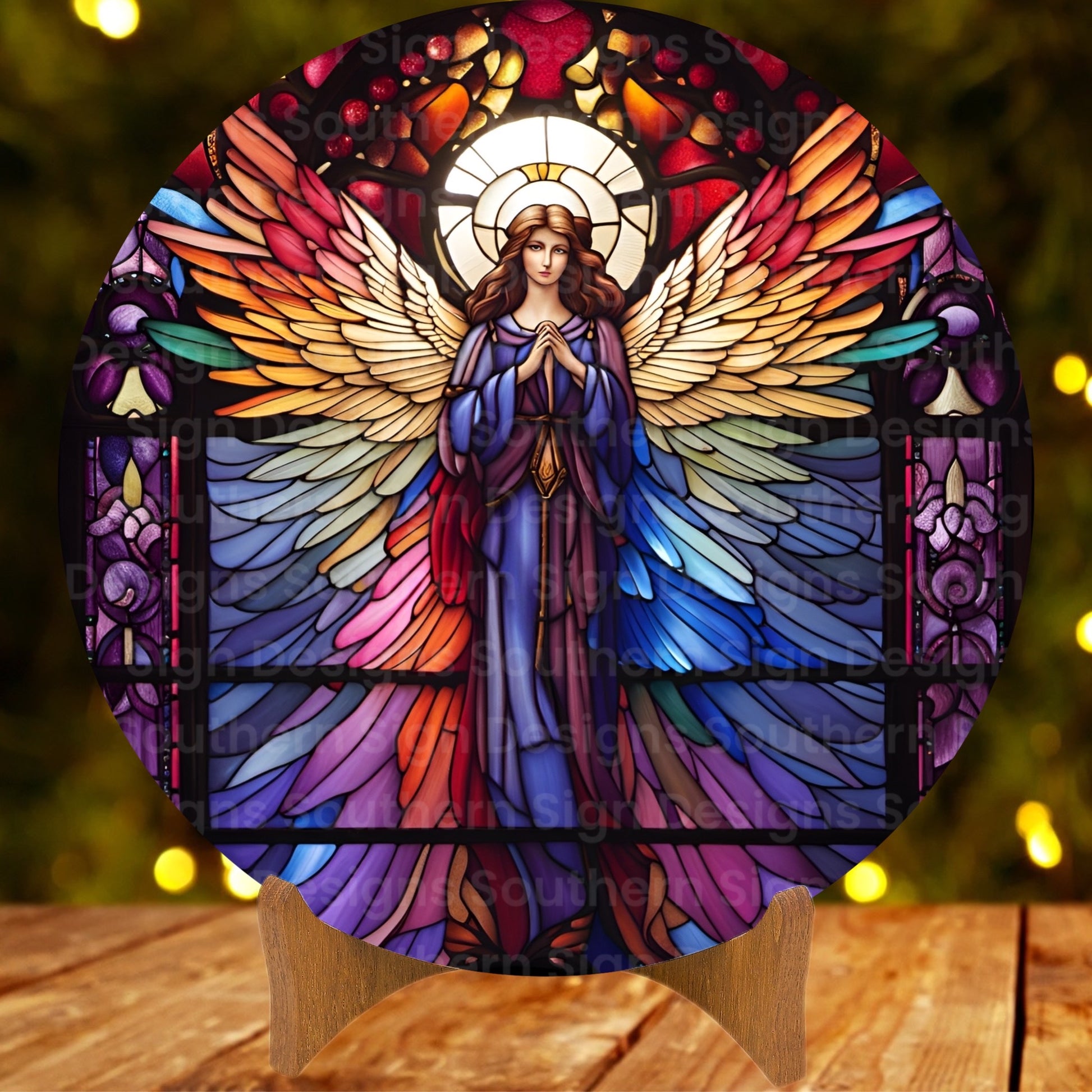 Beautiful Stained Glass Angel Christmas Wreath Sign