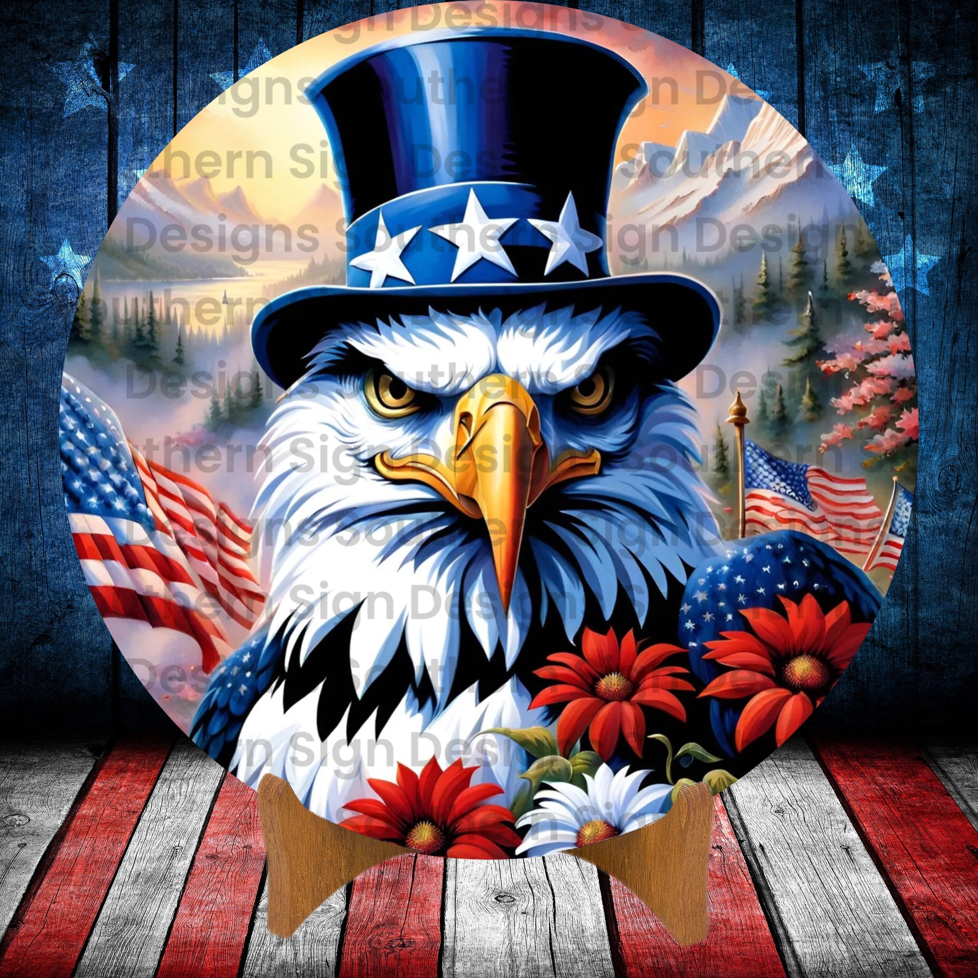 Patriotic Uncle Sam Eagle 4th of July Wreath Sign