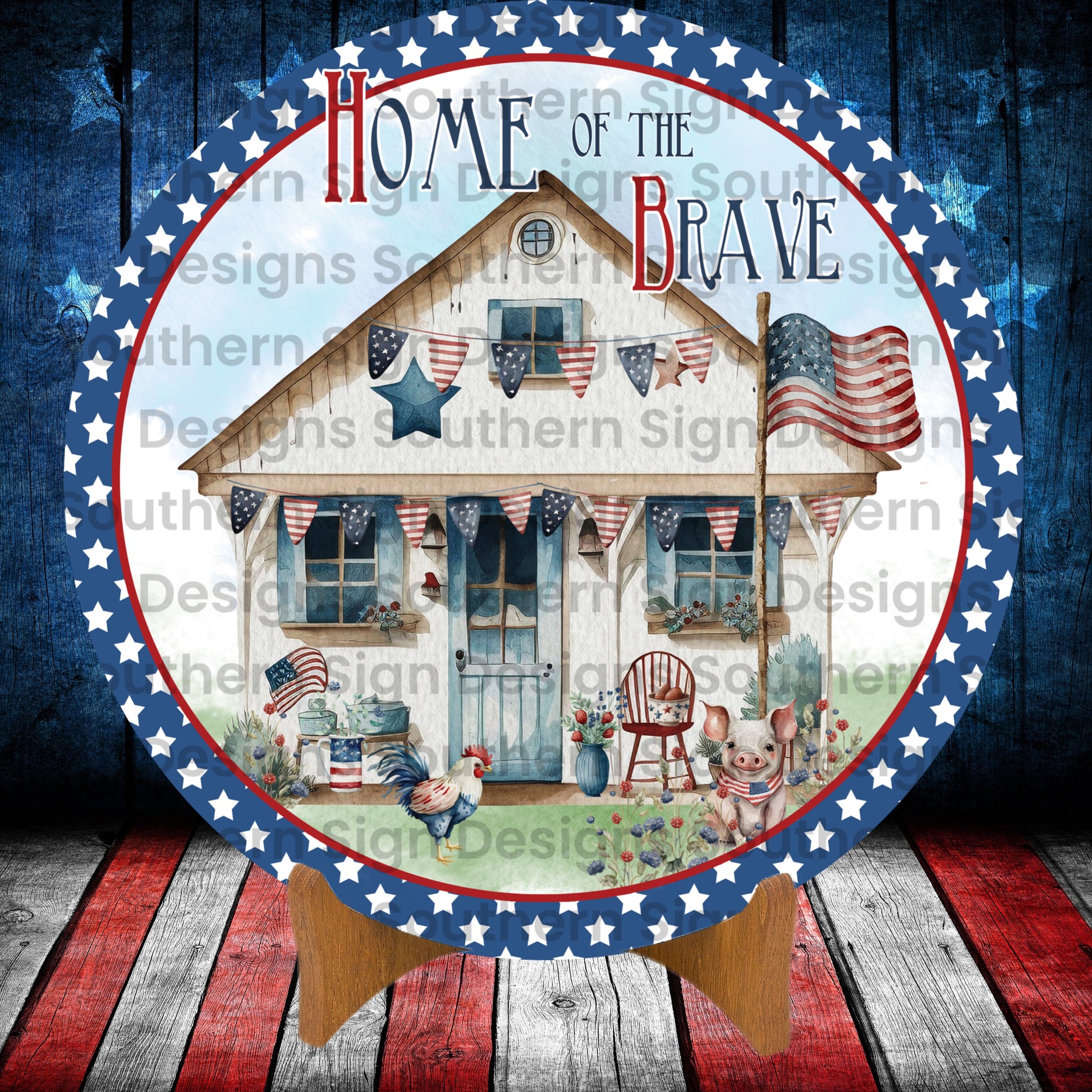 Patriotic Farmhouse Home of the Brave 4th of July Wreath Sign