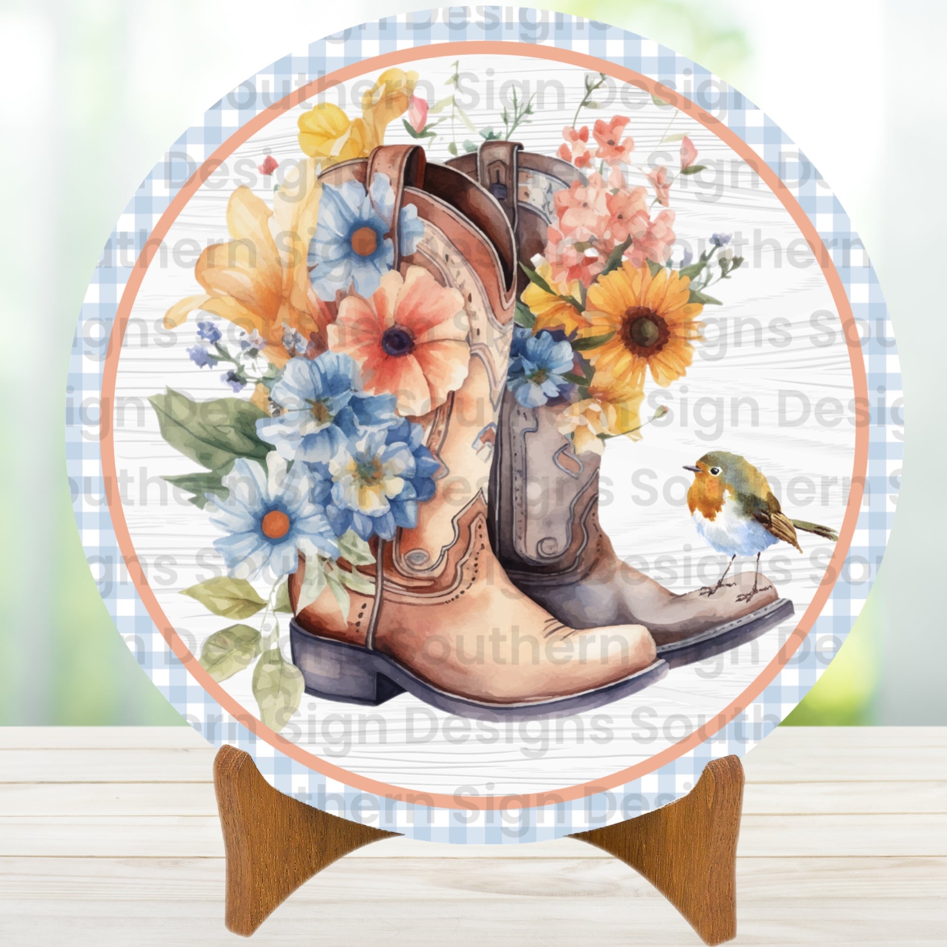 Cowboy Boots and Flowers Spring Wreath Sign