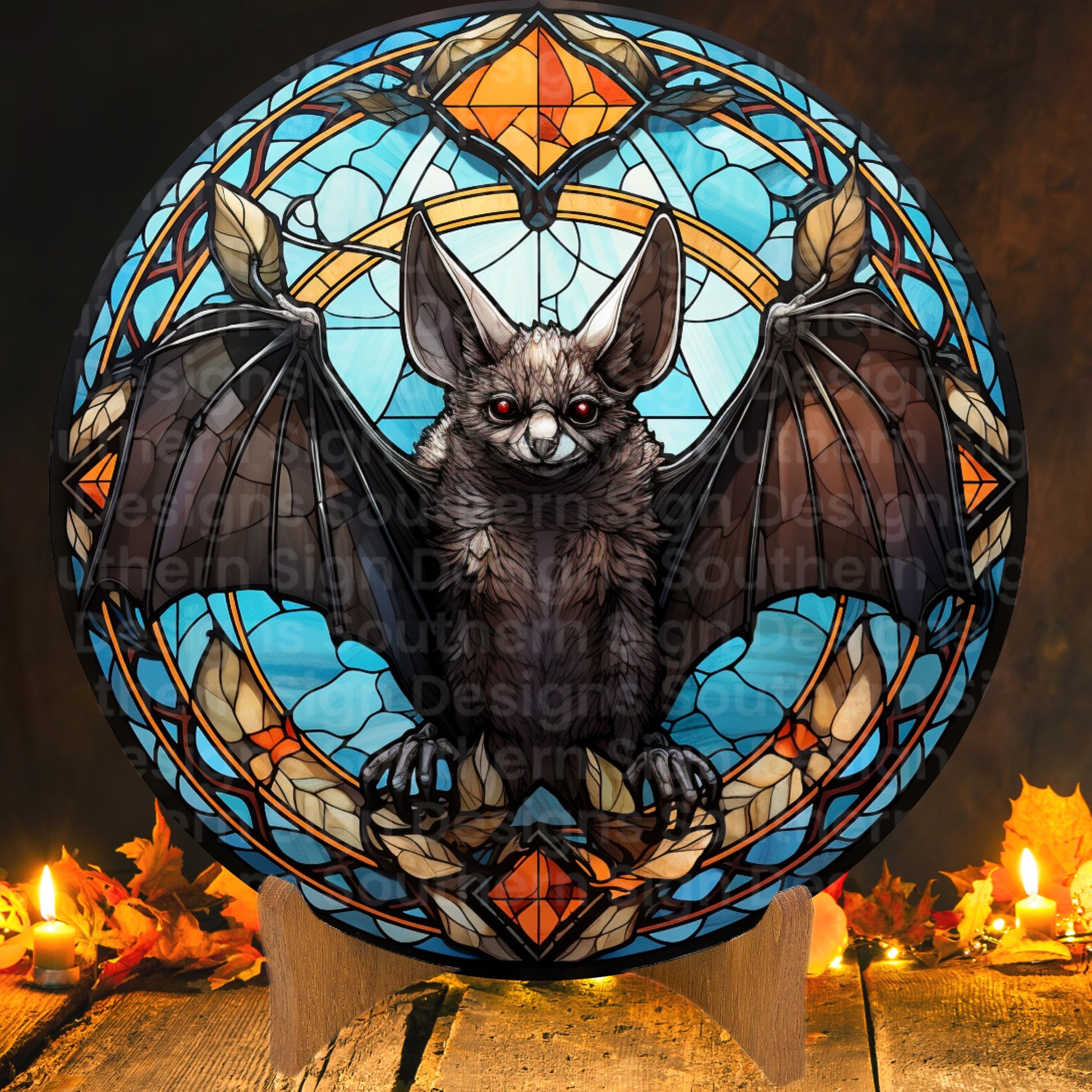Gothic Stained Glass Bat Halloween Wreath Sign