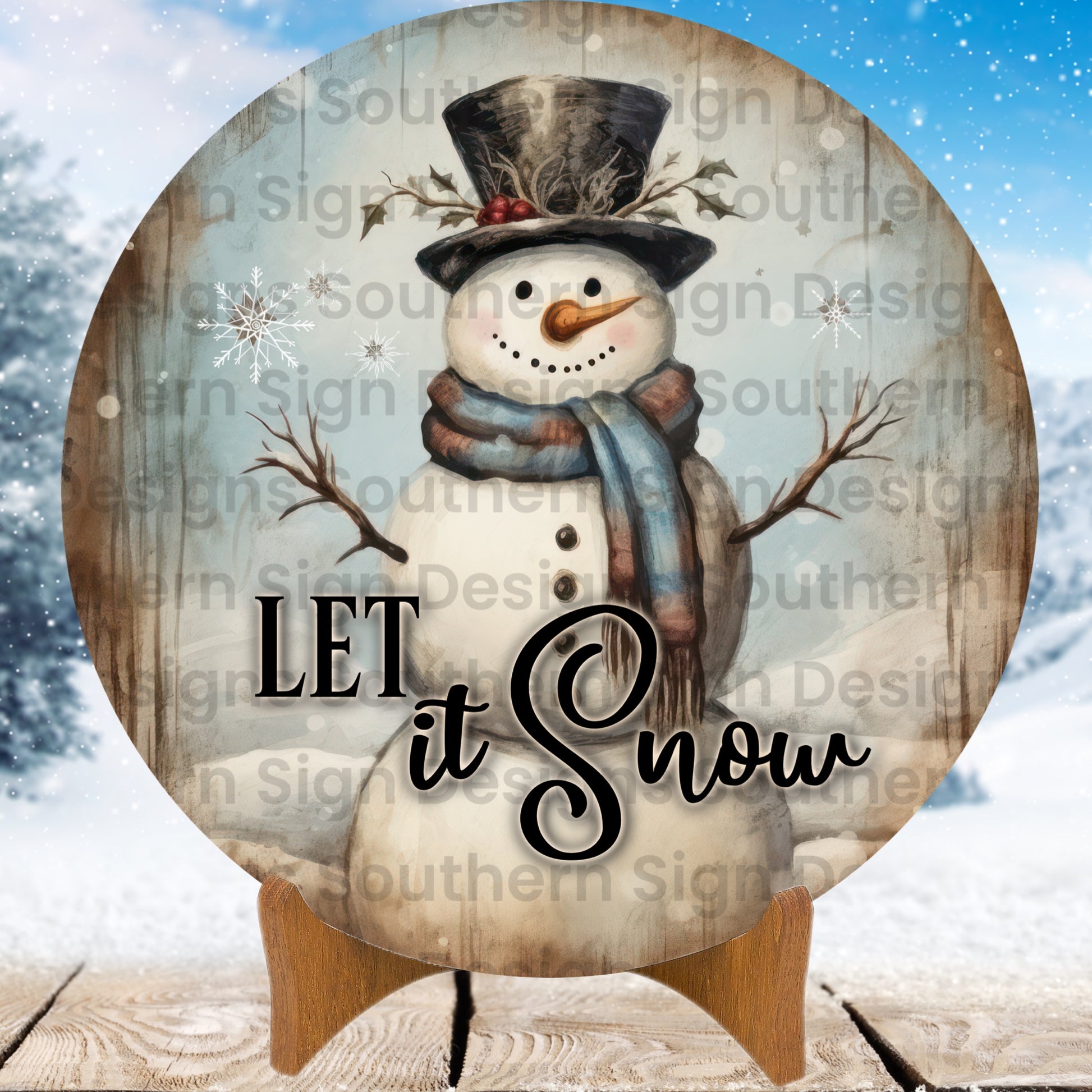 Rustic Weathered Wood Let It Snow Snowman Winter Wreath Sign