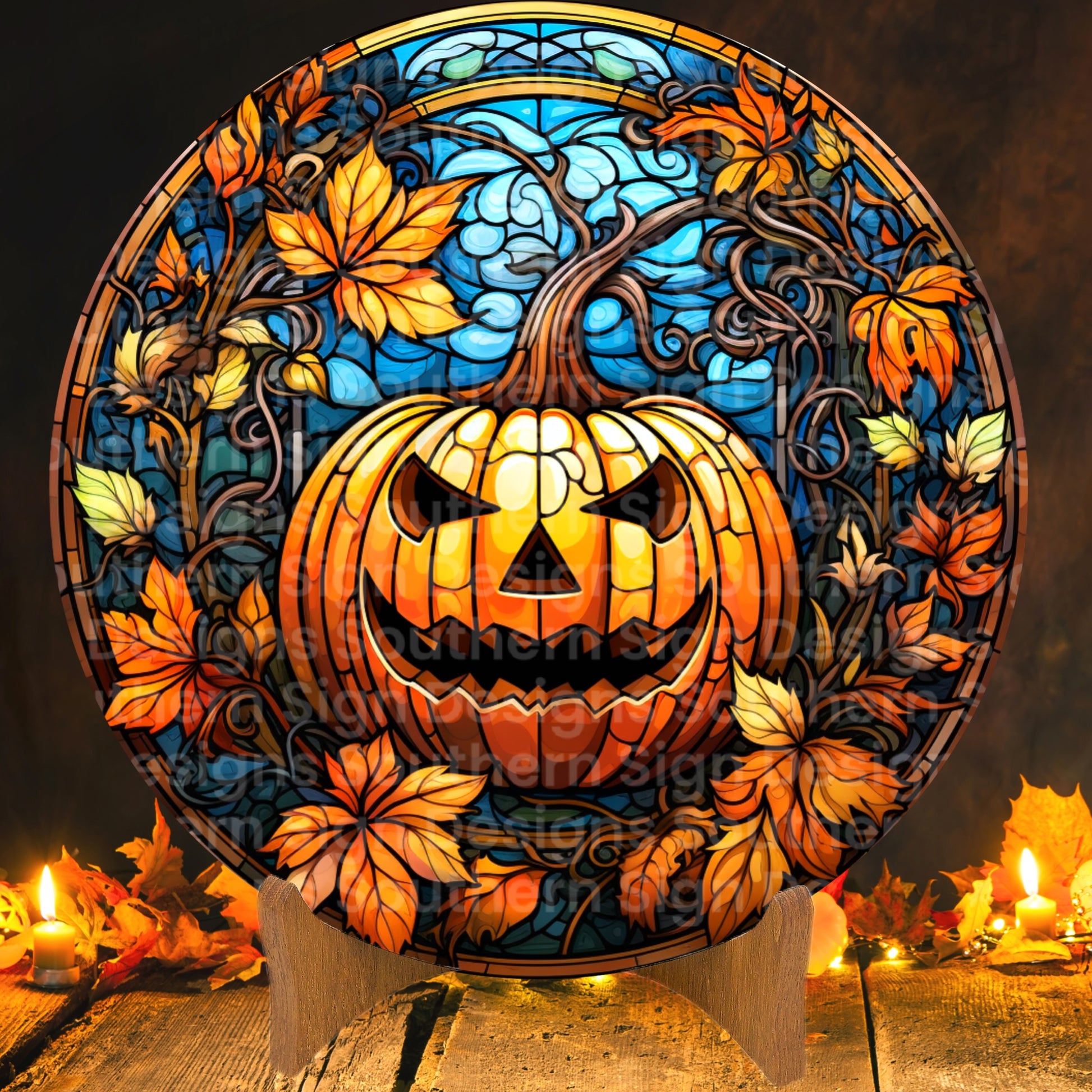 Stained Glass Jack O’ Lantern Halloween Wreath Sign